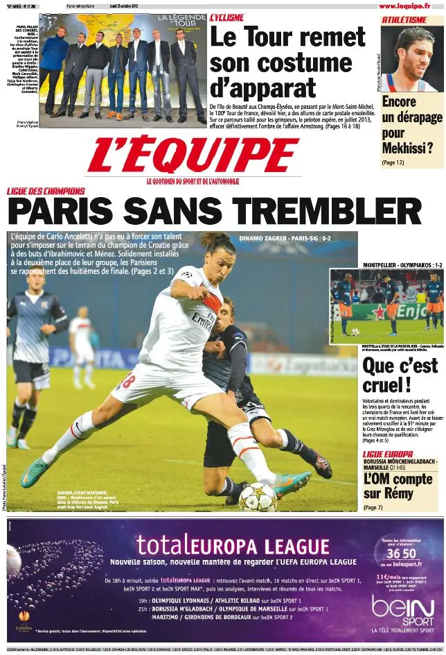 L'Equipe Edition du Jeudi 25 Octobre 2012