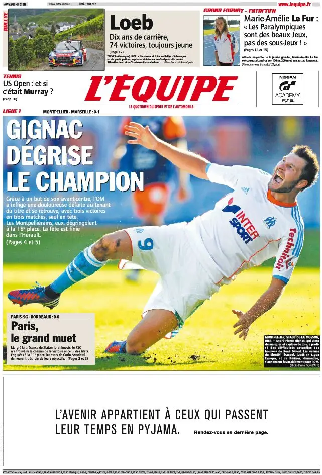 L'Equipe Edition du Lundi 27 Aout 2012