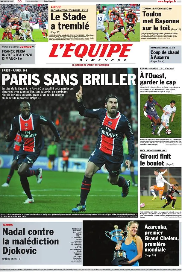 L'equipe Edition du Dimanche 29 Janvier 2012