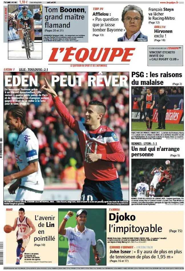 L'Equipe Edition du Lundi 2 Avril 2012