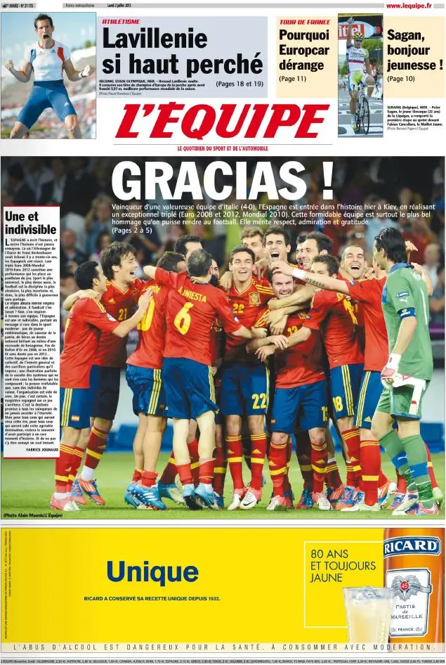 L'Equipe Edition du Lundi 2 Juillet 2012