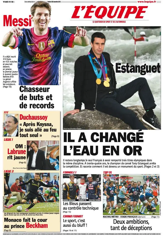 L'Equipe Edition du Vendredi 30 Novembre 2012
