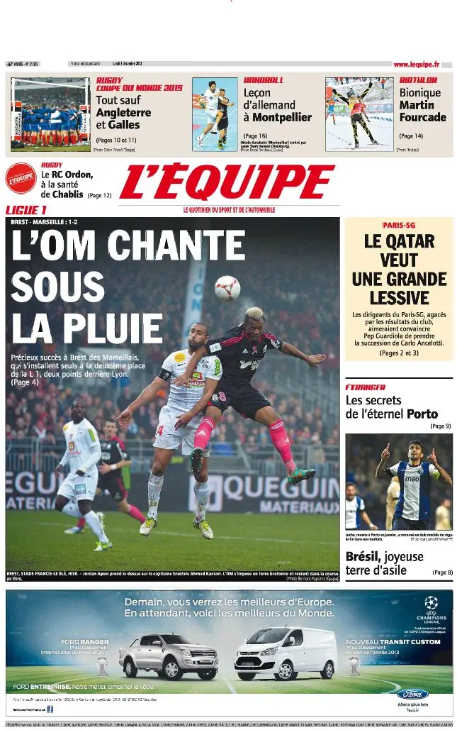 L'Equipe Edition du Lundi 3 Décembre 2012