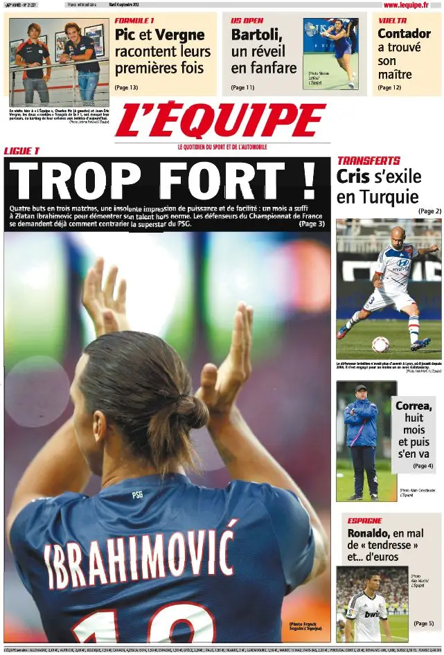 L'Equipe Edition du Mardi 4 Septembre 2012