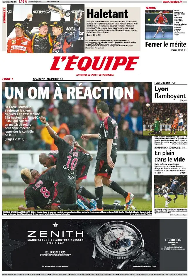 L'Equipe Edition du Lundi 5 Novembre 2012