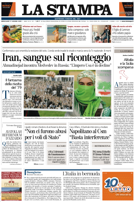 La Stampa Edizione del 17 Giugno 2009
