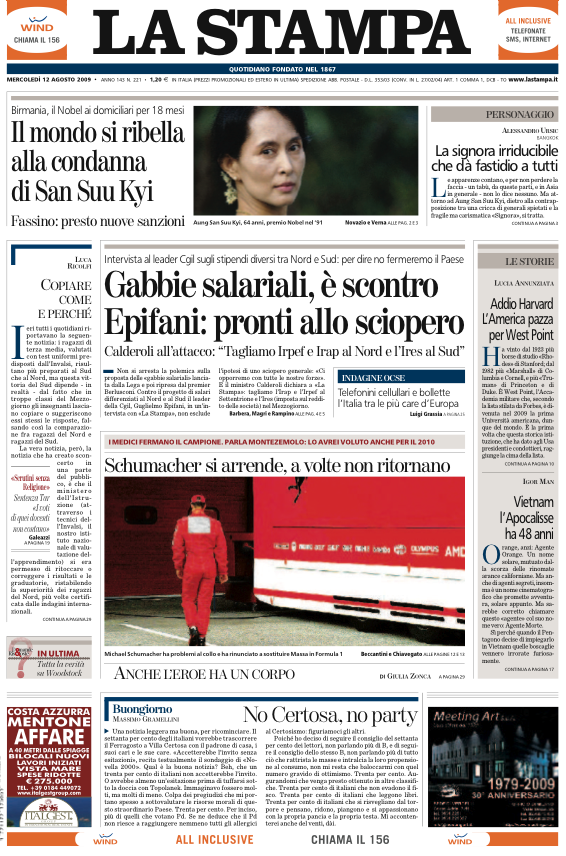 La Stampa Edizione del 12 Agosto 2009
