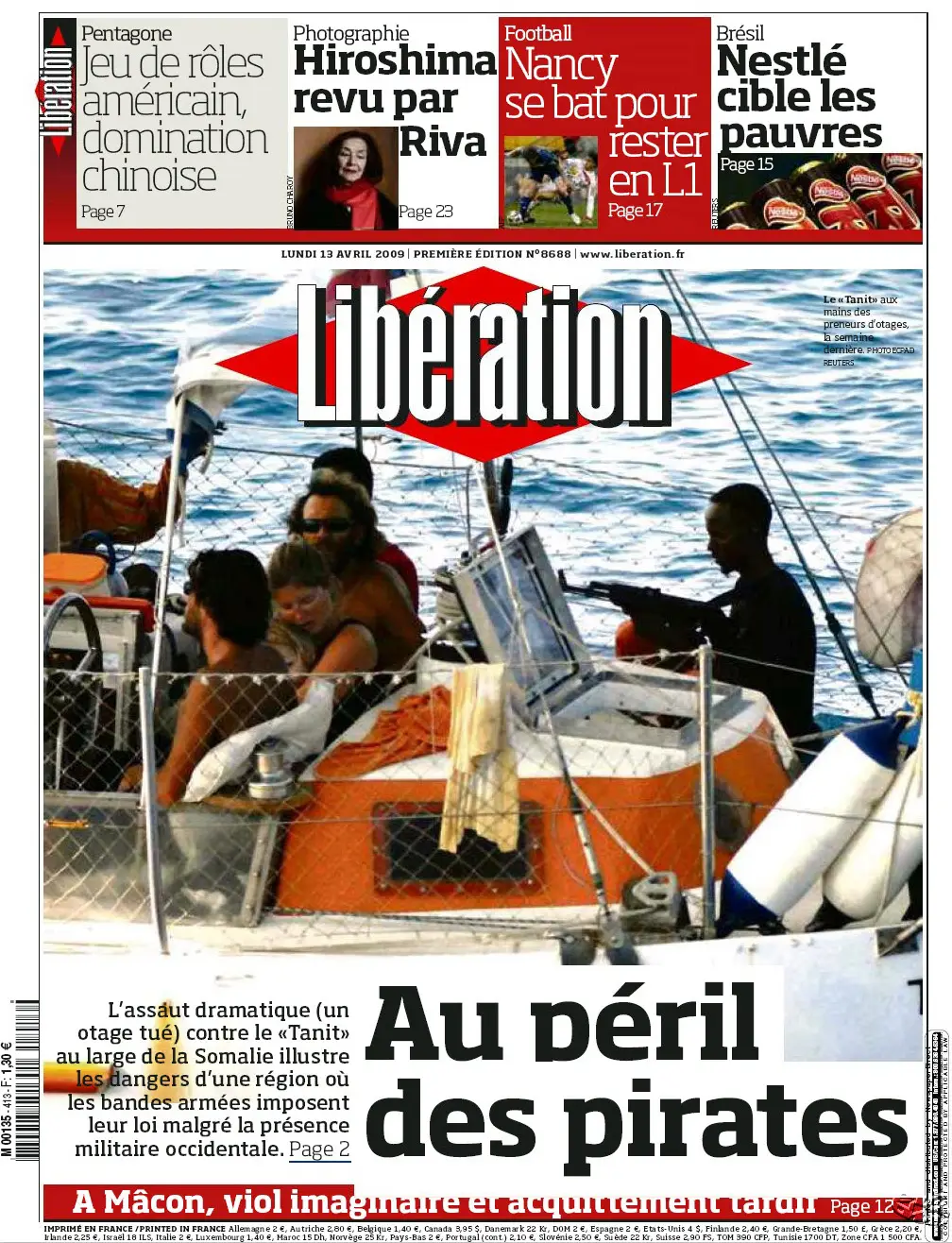 Libération. Lundi 13 Avril 2009