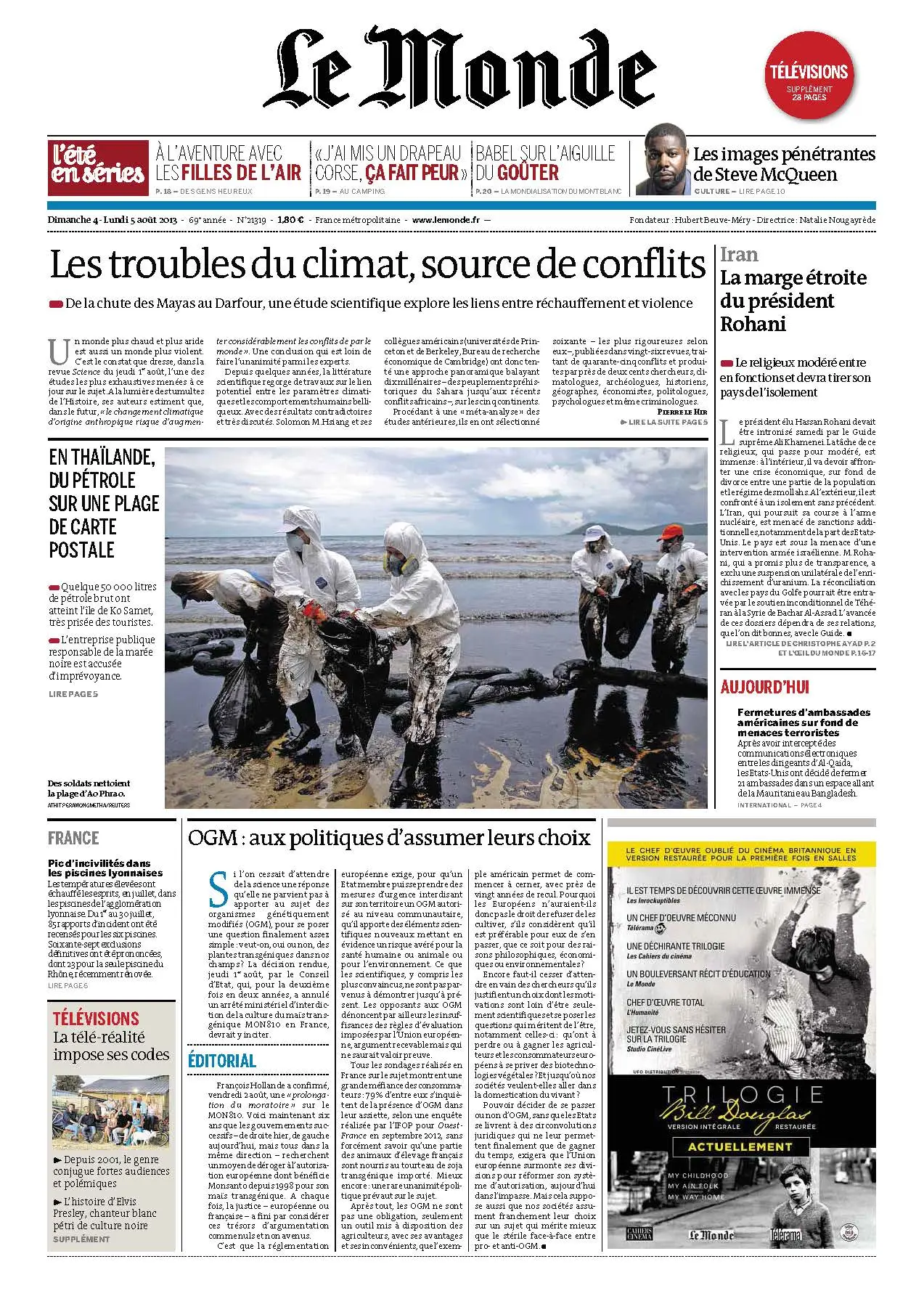 Le Monde du Dimanche/Lundi, 04./05. Août 2013