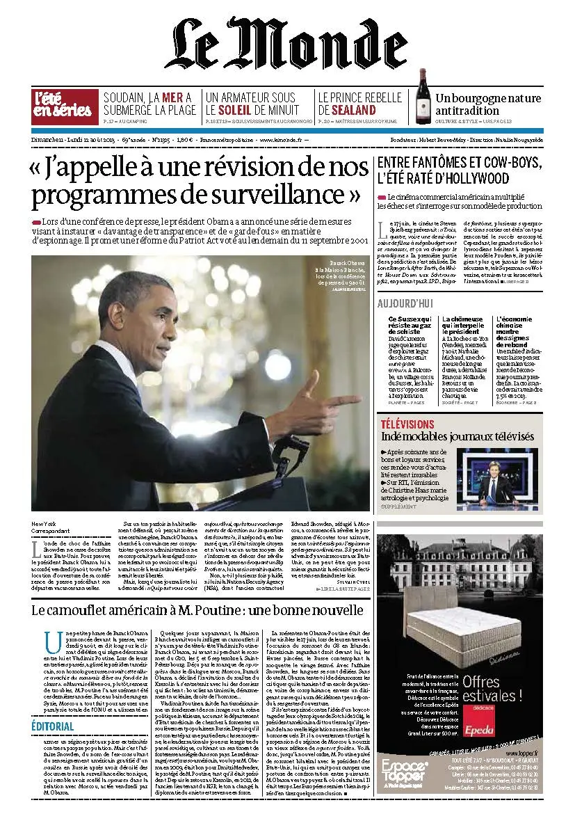 Le Monde du Dimanche/Lundi, 11./12. Août 2013