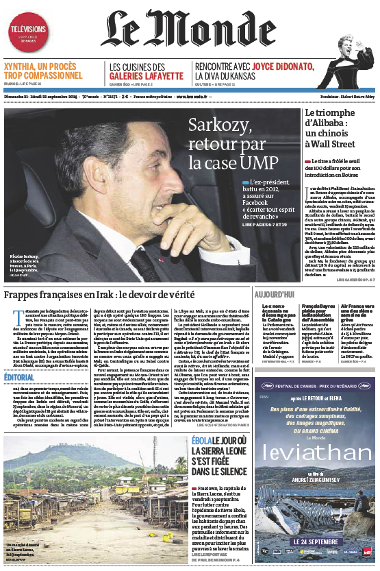 Le Monde du Dimanche/Lundi, 21./22. Septembre 2014