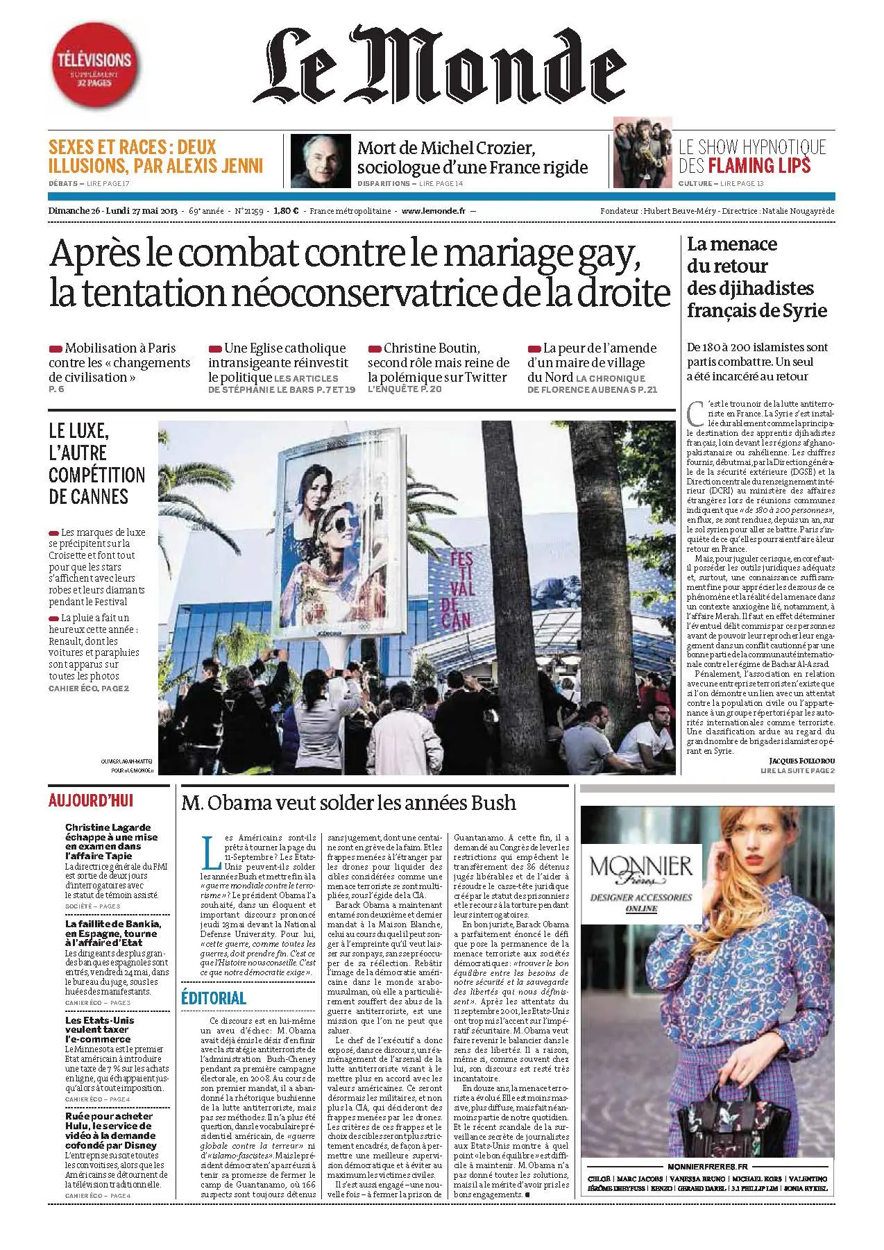 Le Monde du Dimanche/Lundi, 26./27. Mai 2013