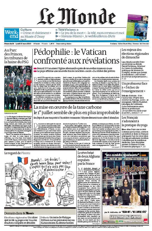 Le Monde du Dimanche 14 & Lundi 15 mars 2010 + Supp TV