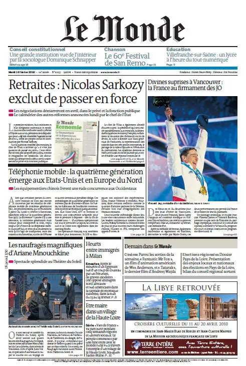 Le Monde du Mardi 16 février 2010 + Supp Economie
