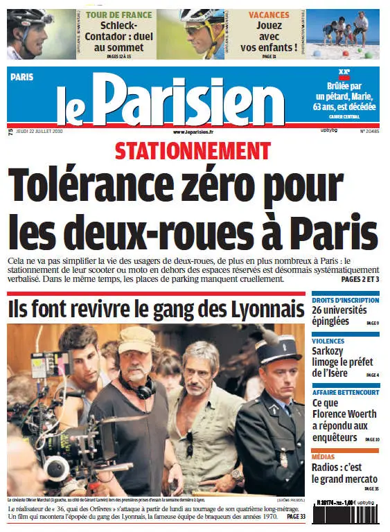 Le Parisien - Jeudi 22 juillet 2010 + Cahier Paris