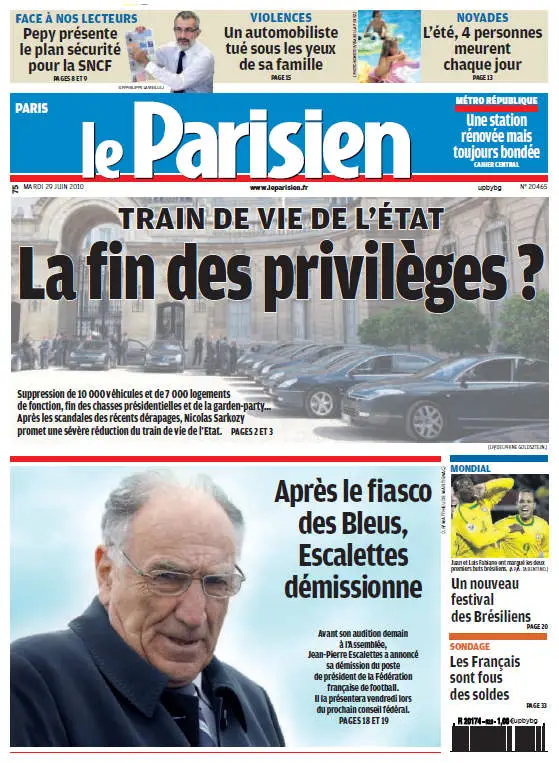 Le Parisien + cahier Paris - Mardi 29 juin 2010