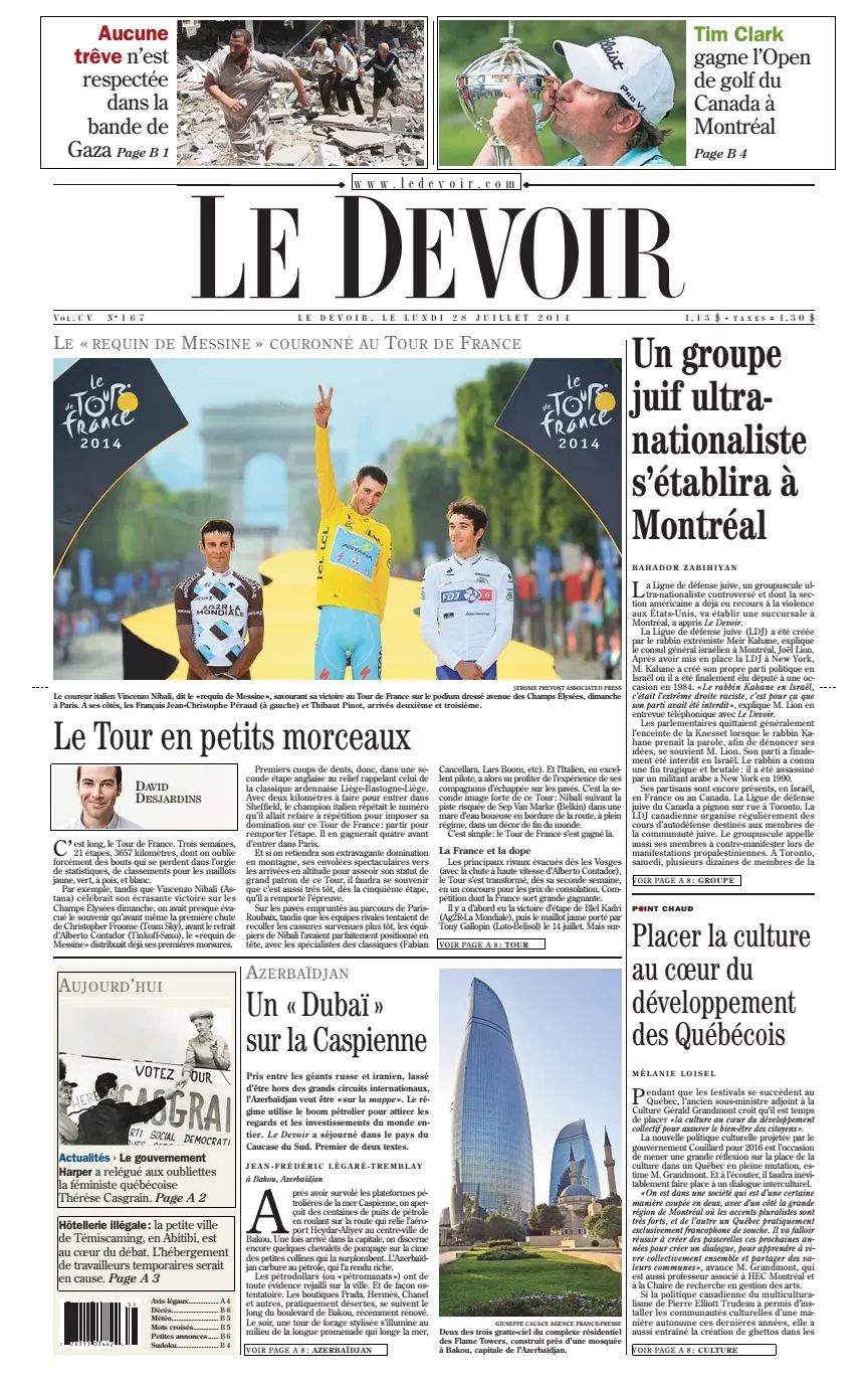 Le Devoir du 28 Juillet 2014