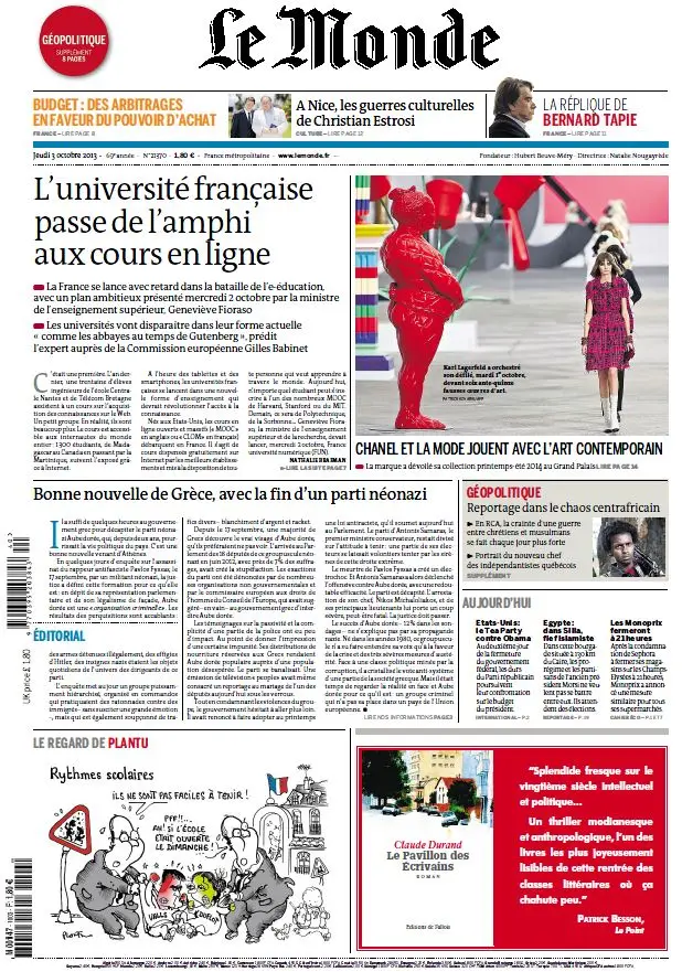 Le Monde + Dossier + Suppléments du Jeudi 3 Octobre 2013