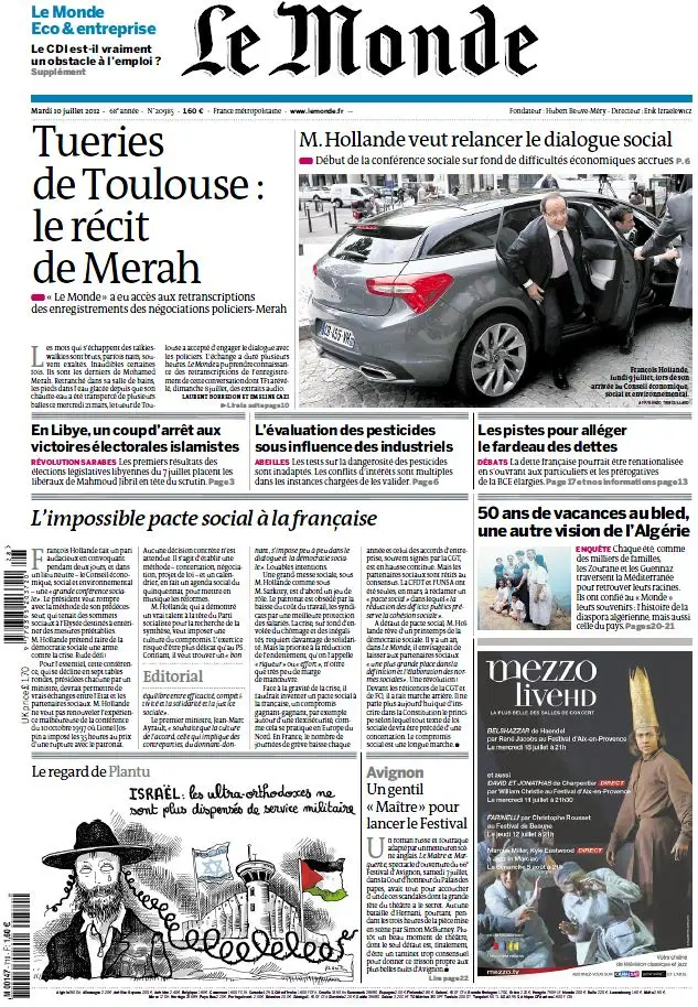 Le Monde et Supplément Economique du Mardi 10 Juillet 2012