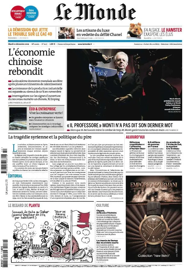 Le Monde et Suppléments du Mardi 11 Décembre 2012