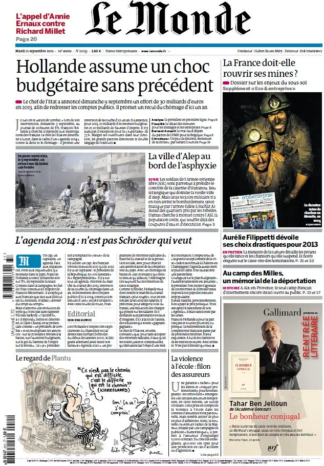 Le Monde et Supplément Economique du Mardi 11 Septembre 2012