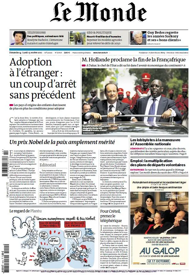 Le Monde et Suppléments du Dimanche 14 et Lundi 15 Octobre 2012