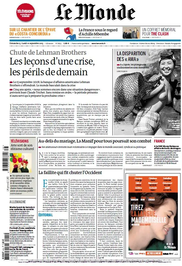 Le Monde + TV + Eco et Entreprise des Dimanche 15 et Lundi 16 Septembre 2013