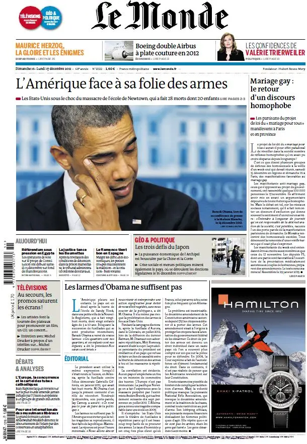 Le Monde et Suppléments du Dimanche 16 et Lundi 17 Décembre 2012