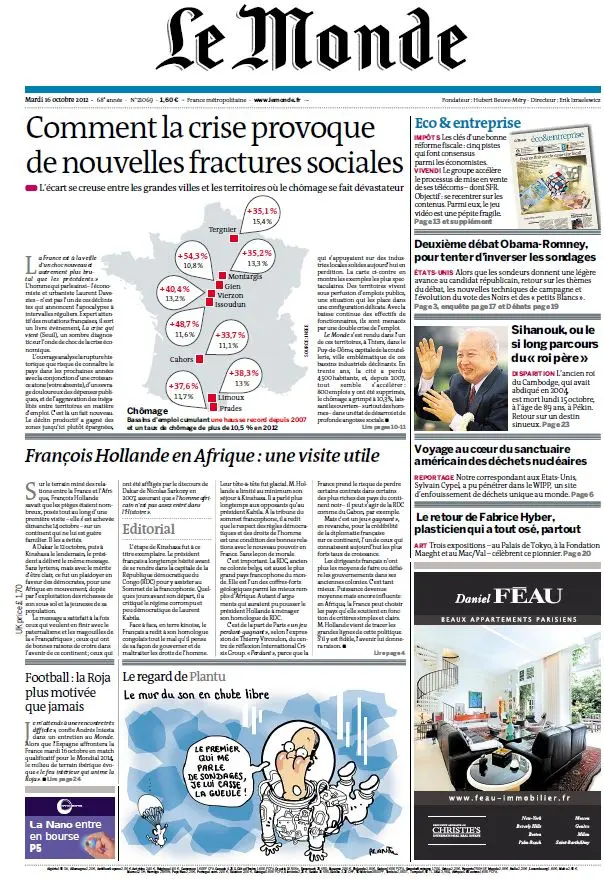 Le Monde et Supplément Economique du Mardi 16 Octobre 2012