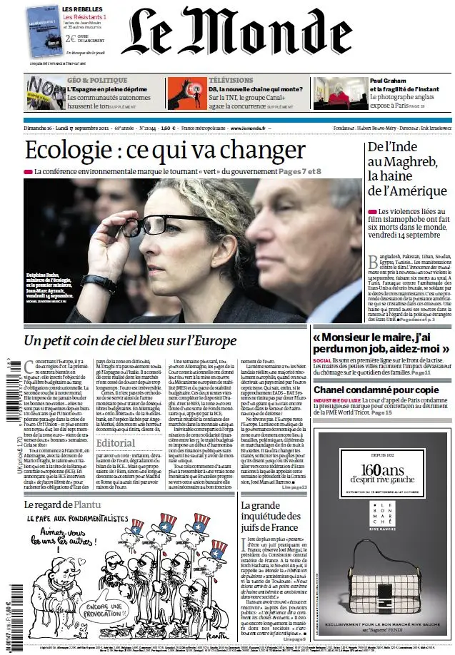 Le Monde et Suppléments du Dimanche 16 et Lundi 17 Septembre 2012