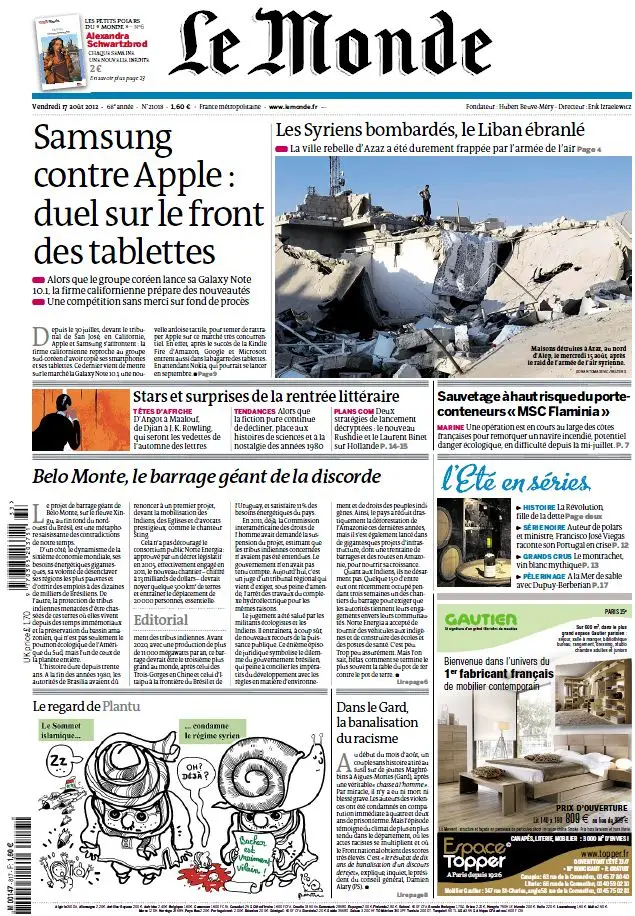 Le Monde du Vendredi 17 Aout 2012