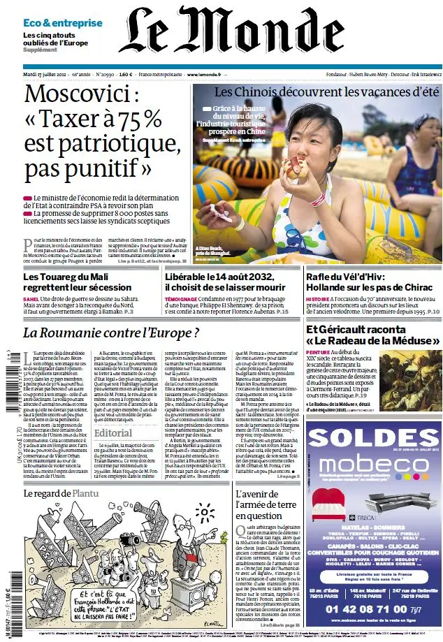 Le Monde et Supplément Economique du Mardi 17 Juillet 2012