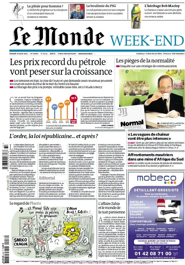 Le Monde et Suppléments du Samedi 18 Aout 2012
