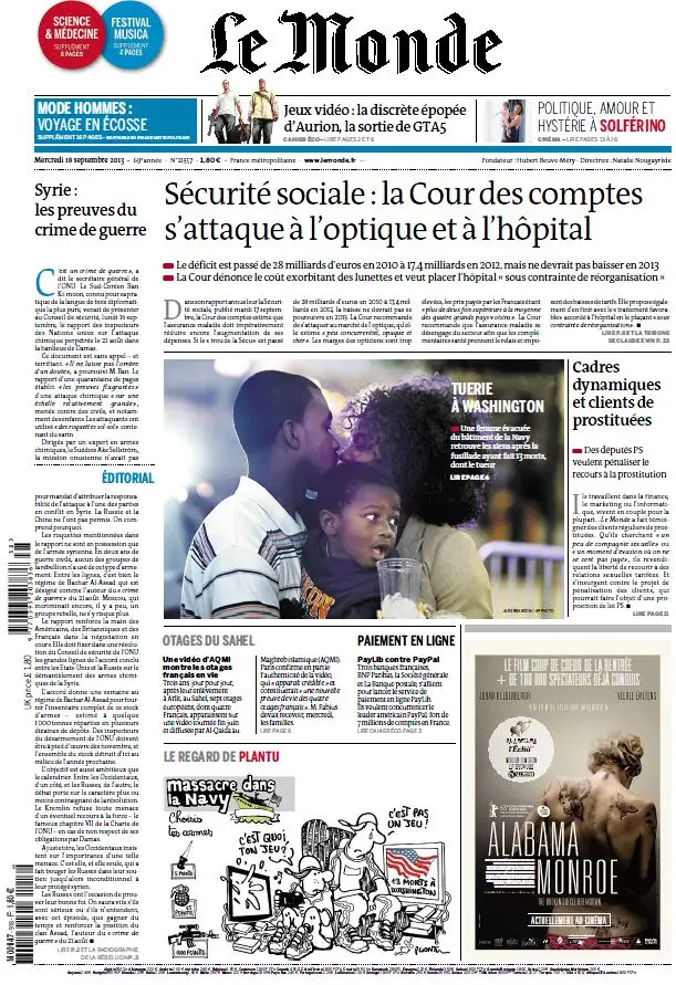 Le Monde et Suppléments du Mecredi 18 Septembre 2013