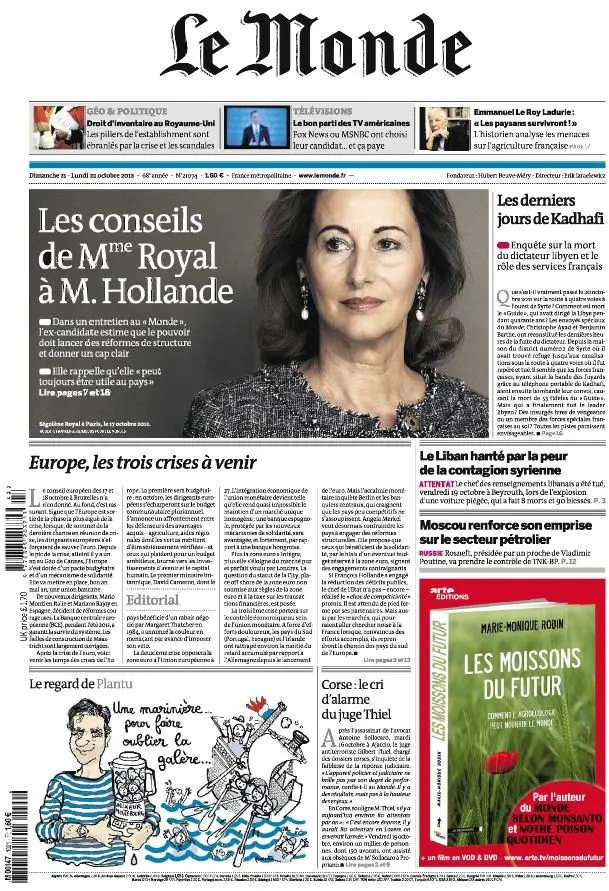 Le Monde et Suppléments du Dimanche 21 et Lundi 22 Octobre 2012