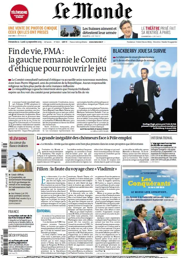 Le Monde + TV + Eco et Entreprise des Dimanche 22 et Lundi 23 Septembre 2013