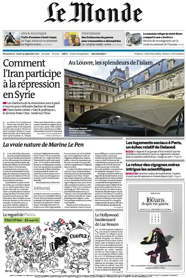 Le Monde et Suppléments du Dimanche 23 et Lundi 24 Septembre 2012