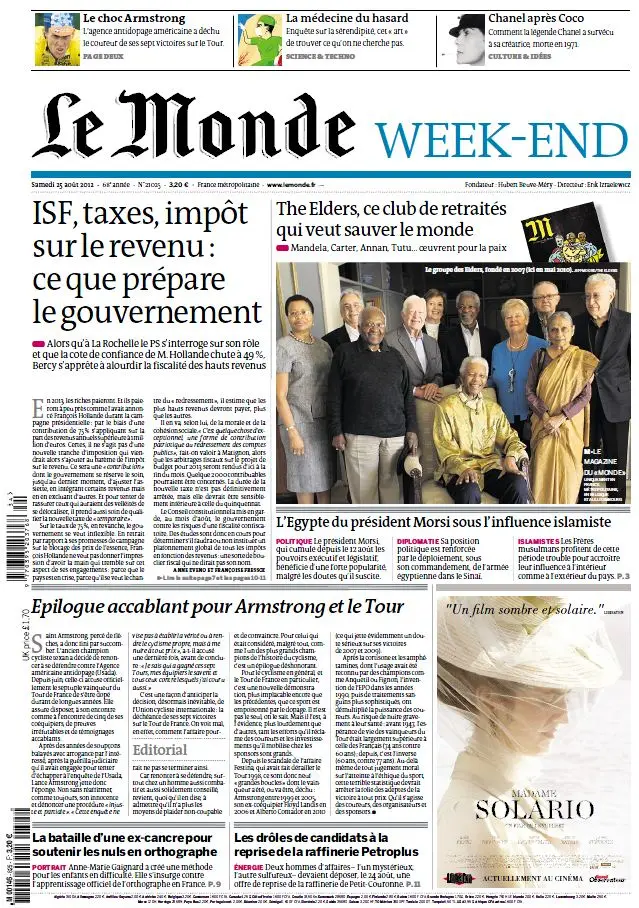 Le Monde et Suppléments du Samedi 25 Aout 2012