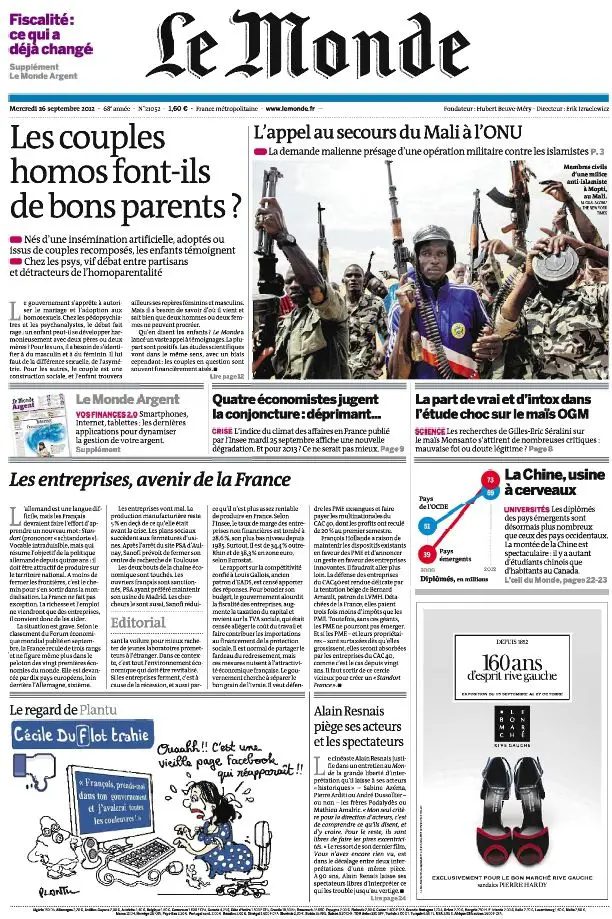 Le Monde et Supplément Argent du Mercredi 26 Septembre 2012