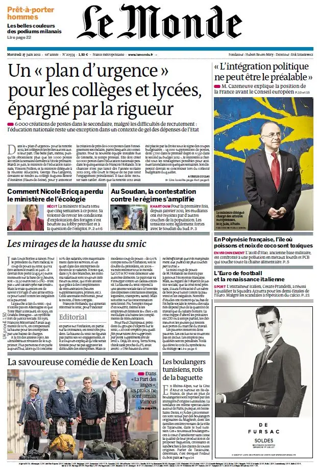 Le Monde et Supplément du Mercredi 27 Juin 2012