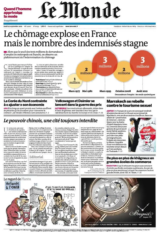 Le Monde et Supplément Mode du Jeudi 27 Septembre 2012