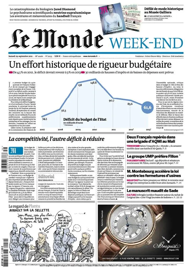 Le Monde et Suppléments du Samedi 29 Septembre 2012