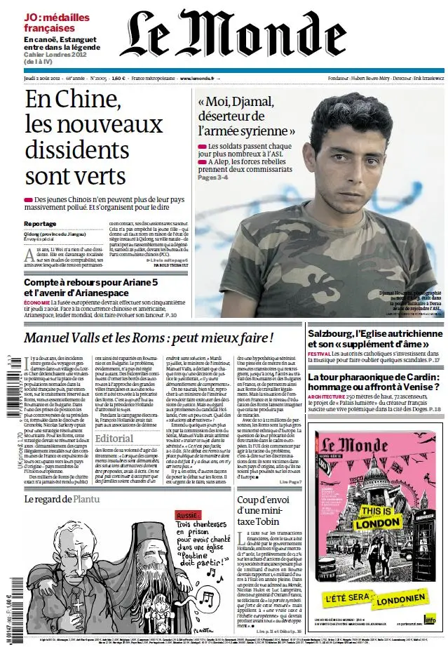 Le Monde et Supplément J.O. Londres du Jeudi 2 Aout 2012