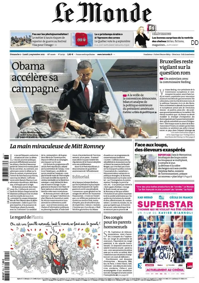 Le Monde et Suppléments du Dimanche 2 et Lundi 3 Septembre 2012