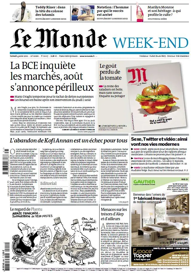 Le Monde et Suppléments du Samedi 4 Aout 2012