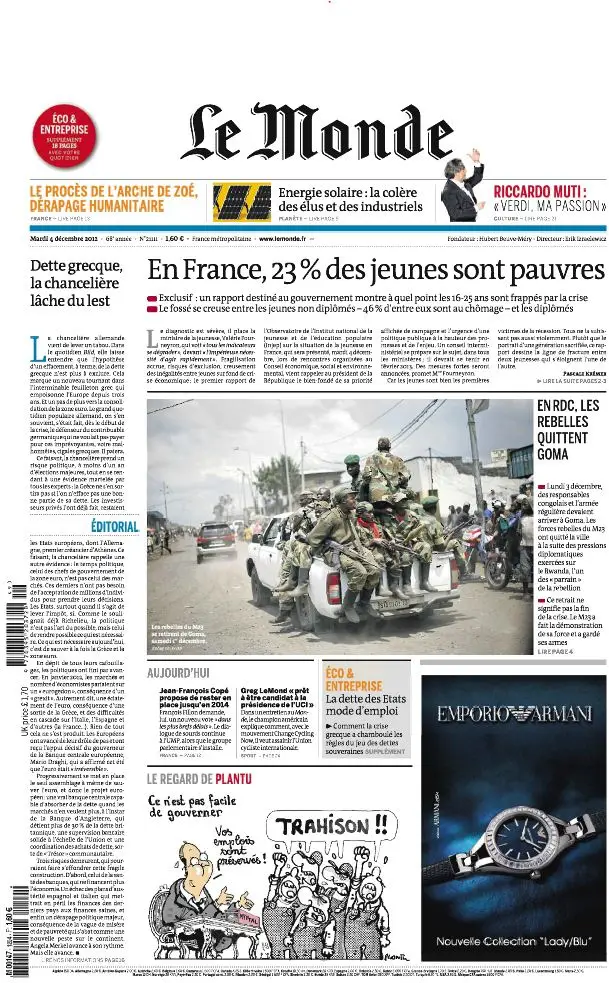 Le Monde et Supplément Economique du Mardi 4 Décembre 2012