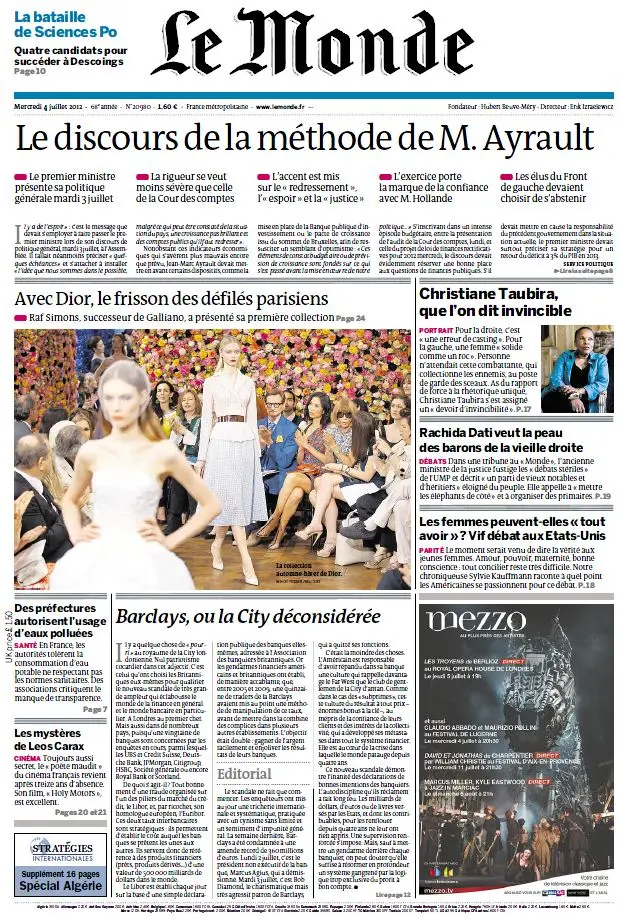 Le Monde du Mercredi 4 Juillet 2012