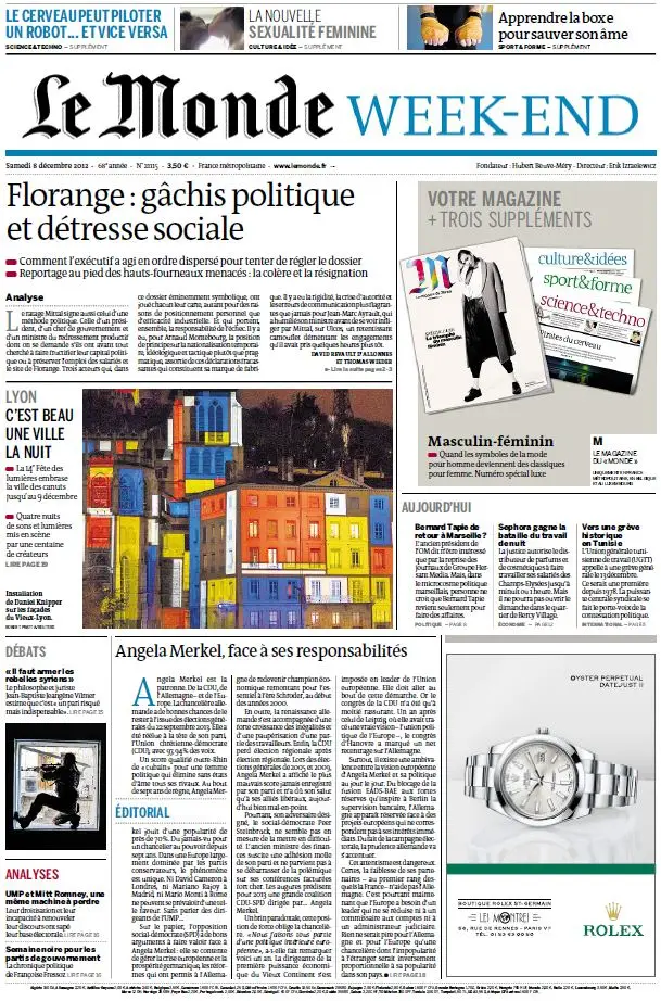 Le Monde et Suppléments du Samedi 8 Décembre 2012