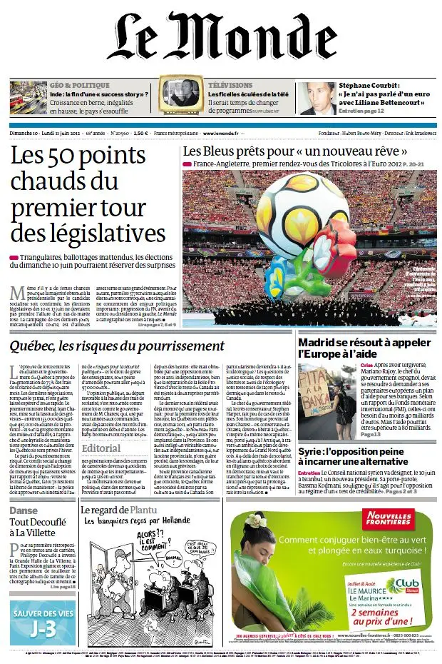 Le Monde et Suppléments du Dimanche 10 et Lundi 11 Juin 2012