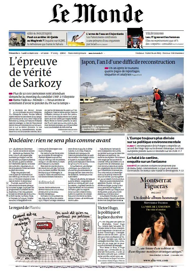 Le Monde et Suppléments du Dimanche 11 et Lundi 12 Mars 2012